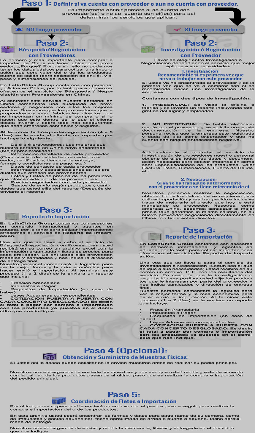 En LatinChina Group contamos con servicios para importar de China que van desde la búsqueda de proveedores hasta la importación de los productos, a continuación le explicamos detalladamente el proceso a seguir para comprar e importar de China exitosamente.
